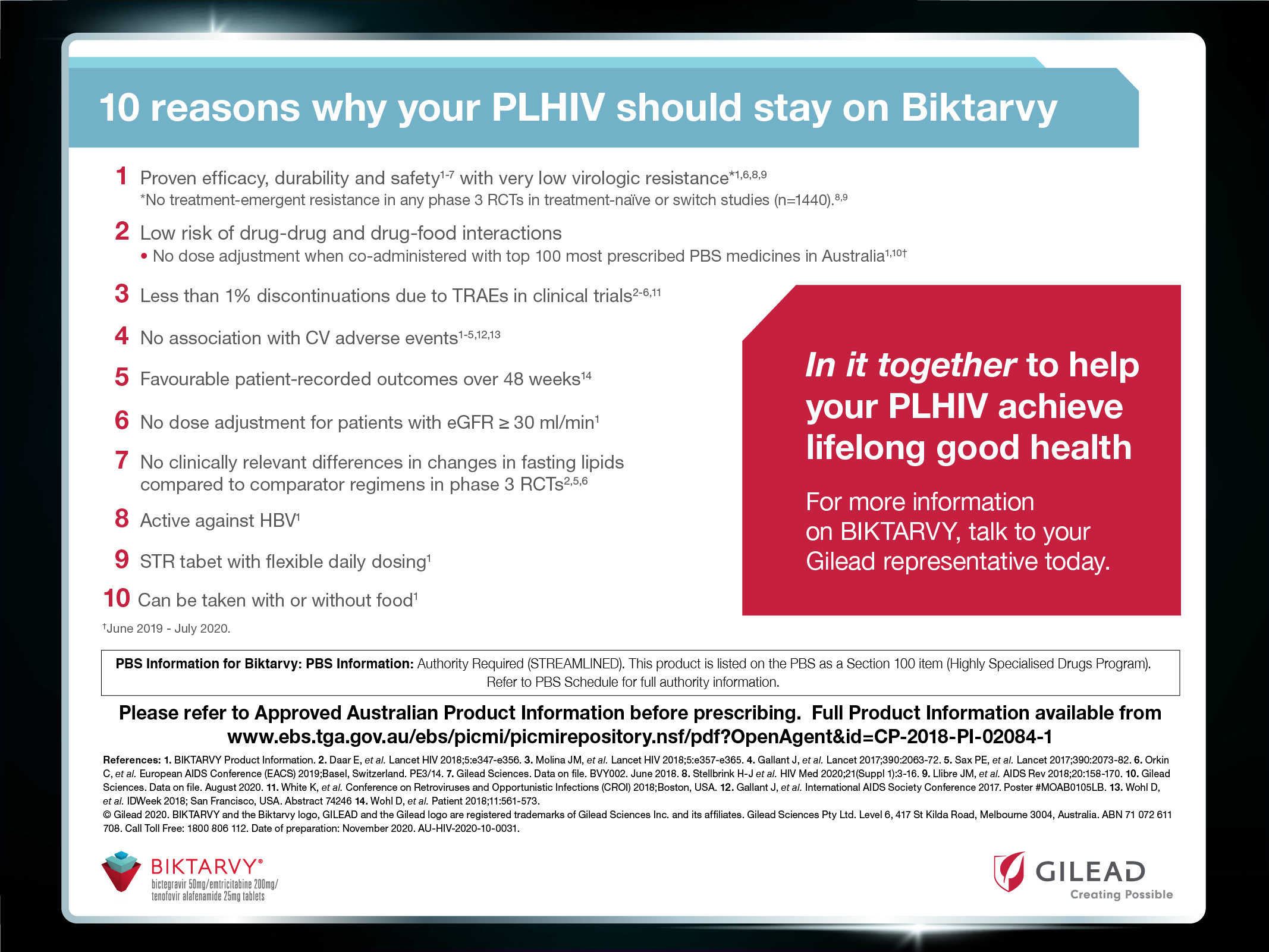 This information is intended for Australian HCPs only. Please review the Approved Product Information before prescribing. Full Product Information is available from the trade display and from Gilead Medical Information: 1800 806 112.